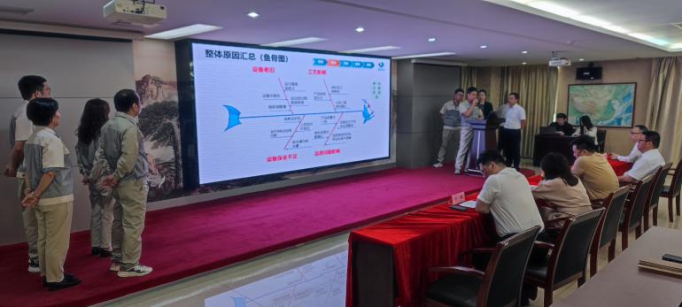 作為公司精益戰略的核心載體,合肥高科“讓精益流行起來”為行動綱領,聚焦智能化裝備升級與生產流程再造從設計端到生產端實現全鏈路協同優化。通過標準化工藝設計及數字化管理工具的應用,改善成率逐步提升,設備綜合效率也大幅度高于以往水平。此外,項目團隊通過魚骨圖等各種分析法,對設備運行狀態、工藝形式及安全隱患進行全面診斷,形成系統性改進方案。例如,針對設備安全不足設備使用率低下,故障率持高不下、人員配備不飽和等問題,團隊增設人員監督、設備改造等實時監控優化維護流程,為后續產能釋放奠定堅實基礎。