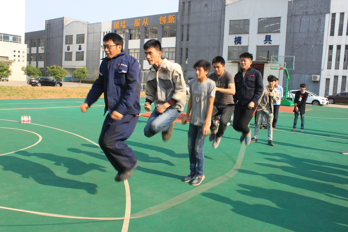 本次活動(dòng)的第二項(xiàng)比賽是跳繩——團(tuán)體跳,每個(gè)事業(yè)部各派出一隊(duì),共六支隊(duì)伍,每隊(duì)七人,男女不限,兩人甩繩,五人跳,這樣既展現(xiàn)了團(tuán)隊(duì)的默契程度,又體現(xiàn)了團(tuán)隊(duì)的協(xié)作精神,這也是合肥高科的主旨文化。跳繩的規(guī)則是一分鐘時(shí)間內(nèi),以團(tuán)隊(duì)成功跳起的個(gè)數(shù)計(jì)算,跳繩過程中可以停頓,以一分鐘結(jié)束時(shí)的次數(shù)為最后成績。